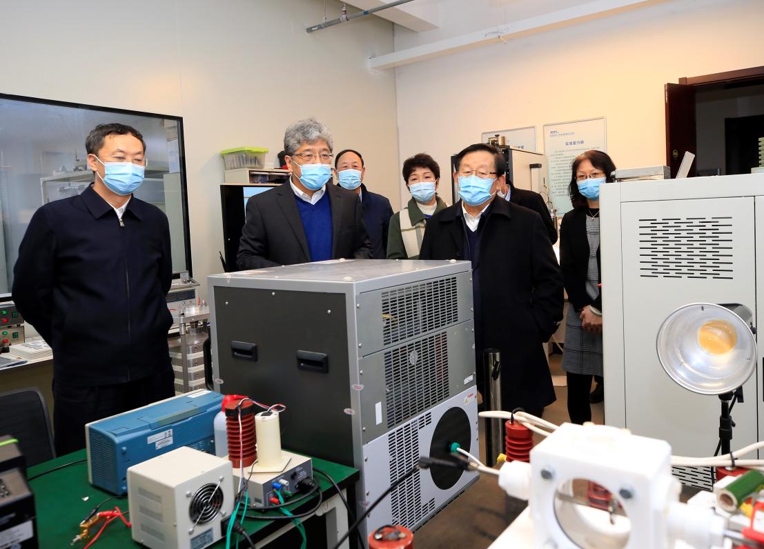 万钢一行参观了新能源电力系统国家重点实验室和太阳能实验室,与师生进行了深入交流,详细了解了国家重点实验室发展历程、人才培养、科技创新等各项工作,对学校的办学成就表示充分肯定。
