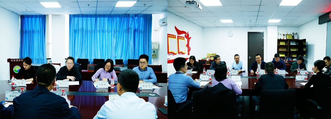 洽谈校企合作事宜。学院党委书记宫凯、副院长葛铭纬、能源电力创新研究院副院长宋记锋、副处级组织员张栋峰以及学院风能、太阳能、生物质能、新能源器件、智慧能源等科研方向教师参加洽谈。