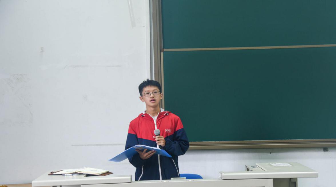 来自新能源2003班的欧阳同学走上讲台代表全体新生发言。他回顾了自己高中时代的学习生活并表达了自己对大学对未来的困惑,并表示希望能够在新的环境下继续努力拼搏,在学院老师的指导下明晰学习方向和目标,施展自己的能力,向未来迈出坚定的步伐。