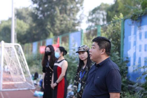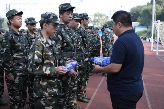 党委书记王集令,党委副书记姜良杰,团委书记黄凯兰,2022级辅导员王轩来到军训场地慰问承训教官及2022级参训新生。