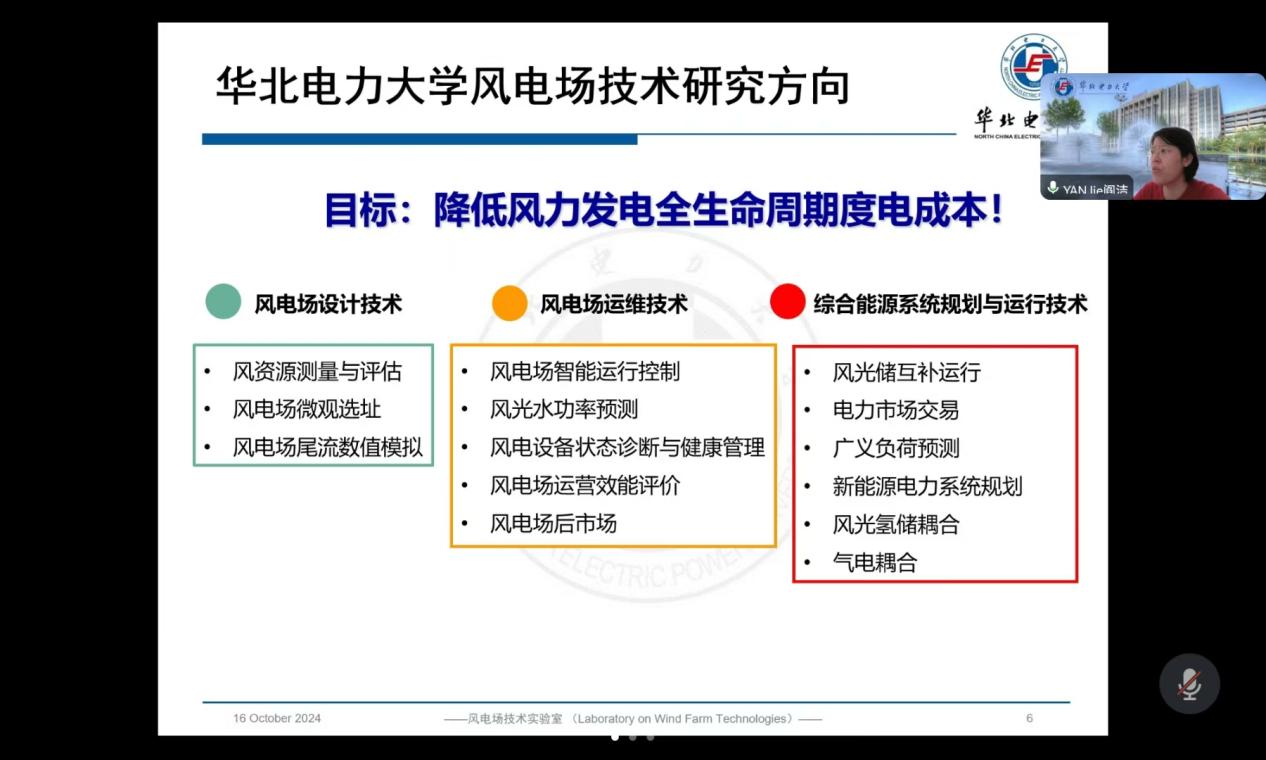阎洁对风力发电研究中心党支部及智能风电场实验室研究生党支部的基本情况进行了介绍,并从风电场设计技术、风电场运维技术、综合能源系统规划与运行技术三大方面展开介绍樱花动漫 风电场技术的研究方向、研究进展与成果。