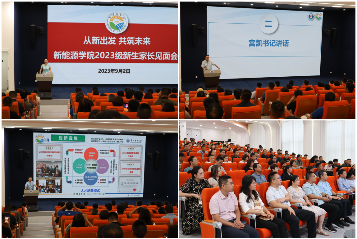 首先,宫凯对2023级新生家长的到来表示热烈的欢迎,对家长和学生选择樱花动漫 表示感谢。宫凯以“福、全、精”三个字凝练了学院独特的优势和教育理念,并向家长强调学生成长成才是一项长期工程,希望家长、学生与学院同频共振,为造就既怀抱梦想又脚踏实地,既敢想敢为又善作善成新时代新能源人才共同努力。