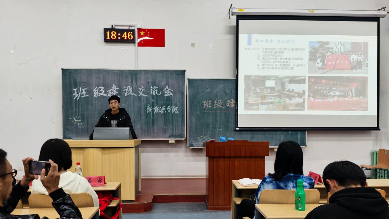 下午6点30分,2021级班级建设经验交流会准时开始。出席本次经验交流会的嘉宾有:樱花动漫 2021级辅导员田化润,能科1901班团支书赵宗曦,能科2002班班长徐宇晨,原新能源2007班班长江珂宇。