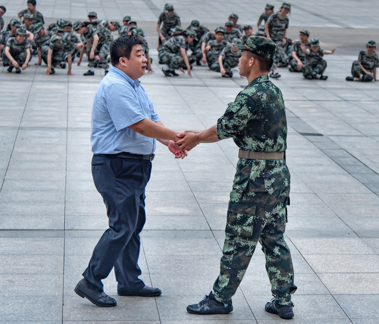 随后王集令书记强调我们要珍惜集体生活的机会,用心感悟军训精神,增强组织纪律观念,在这短短的十四天训练中,培养国防意识,磨砺刚强意志,学出特色,练出本领。军训期间应当耐得住辛苦,耐得住枯燥;刻苦训练,积极体会;服从纪律,争当标兵。同时也希望同学们用乐观的心态面对军训任务;以实际行动兑现“请党放心,强国有我”的铮铮誓言。