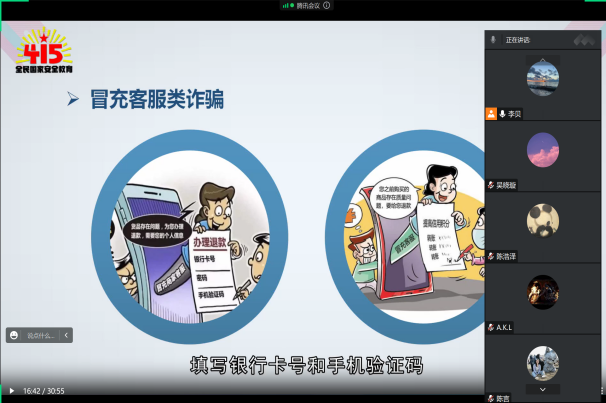 大学生具有一定的自主经济支配能力,并且还为走向社会,思想较为单纯,因此大学生也成为较易上当受骗的人群。公开课通过几个经典案例,从作案手法、方式、对象以及过程的还原,向同学们传播安全教育知识。众多的案例证明:安全事件的原因都有一个共同特点:那就是疏忽,缺乏防范意识。因此,切实做到防患于未然,提高人的安全意识尤为重要。观看结束,同学们都纷纷表示安全教育确实很值得重视,即使是在安全系数较高的校园,犯罪分子依然可以通过网络等其他方式渗透进来,实行诈骗,危害同学们的安全。大家一致认为在工作和处理问题时,需要时刻持续冷静的头脑并不断提高业务技能,以不变应万变,防范各种突发状况同时,要树立危机意识,因为事故或事件本身就是对思想麻痹者的惩罚,有时甚至是十分严重的惩戒,切莫让一时的疏忽,成为终身的遗憾。