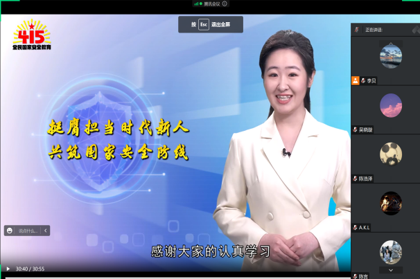 为增强学生安全教育意识,樱花动漫 于4月12日晚20点组织学生一同线上观看国家安全教育宣传视频。各年级以不同形式分小组积极响应活动,在宿舍集体观看安全教育视频。视频为学生介绍全民国家安全教育日的来历、意义和国家安全知识,让国家安全观念入脑入心。观看过后,许多同学表示受益匪浅,深有感悟。