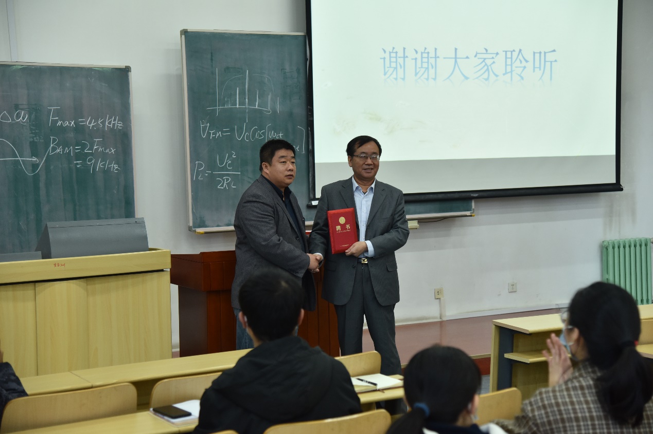 学院党委书记王集令老师为田德老师颁发学生党员成长导师聘书。