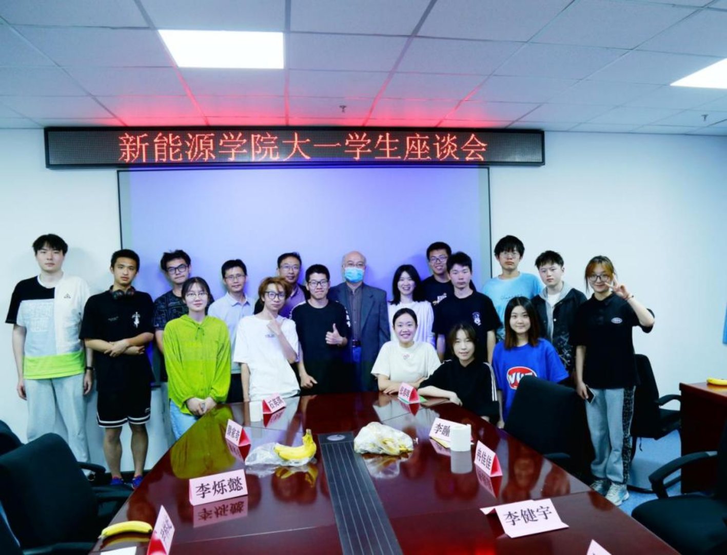 刘乐浩老师首先简要介绍了学院和相关专业的基本情况。随后,学生们就学业生涯规划、就业前景、社会实践等学习生活方面进行了提问,老师们悉心解惑,为同学们拨云见日。李英峰老师结合专业背景给大家介绍了新能源行业的发展现状,指出新能源行业朝气蓬勃,前景可期。马峻峰老师结合个人经历交流了他的成长感悟,并对同学们提出了宝贵建议。他嘱咐同学们,在做事方面,首先要有理想,因为只有有了理想和目标,才有了方向。其次我们做事情要有规划,这样才能从容不迫、有条不紊地解决问题。第三,我们要有行动力,否则将会竹篮打水一场空。最后在做人方面,马老师提出我们要谦虚,不可自傲,但也不能过于自卑并且要有一颗包容的心,严于律己,宽厚待人。