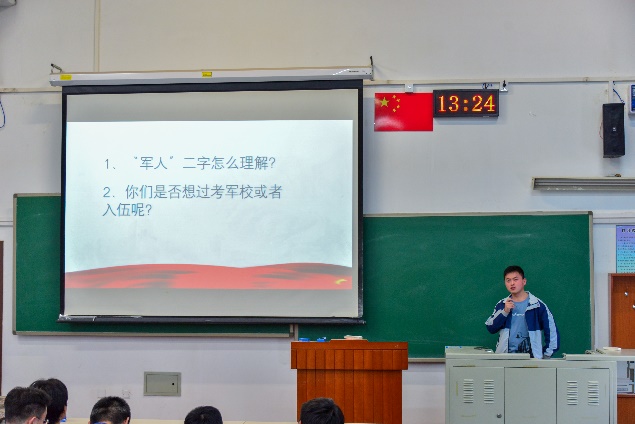 魏天雨老师以国防的重要性为切入点,从征兵工作的意义、基本条件、组织流程、优待政策四个方面详细解读了大学生应征入伍的政策法规。同时他强调征召大学生参军入伍是党中央、国务院、中央军委作出的重大战略决策,对改善兵员素质、提高部队战斗力、促进青年学生的成长成才具有重要意义。