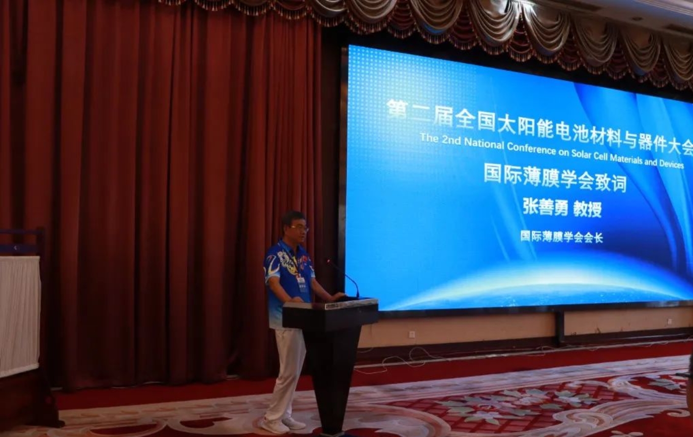 国际薄膜学会会长、西南大学张善勇教授为大会致辞并做大会报告,题目为《钙钛矿太阳能电池稳定性问题》