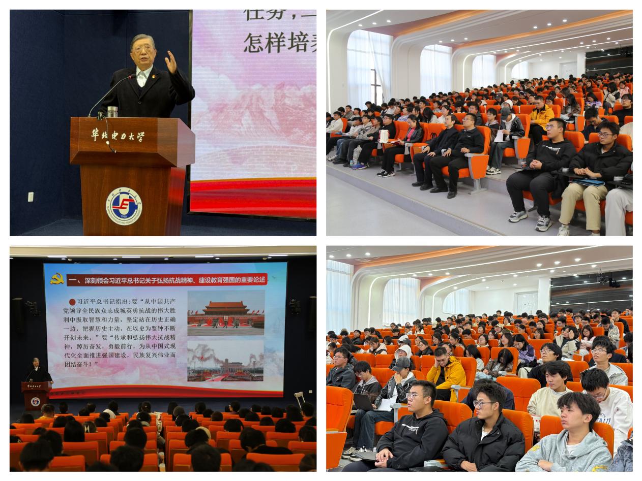 此次报告让新生受益匪浅,同学们纷纷表示,将铭记革命先烈的牺牲与奉献,传承和弘扬伟大抗战精神,紧扣学校第三次党代会部署,把个人理想融入国家发展大局。新能源院将持续发挥“五老”优势,引导学子循着党代会发展蓝图,勇担使命、守正创新,成长为兼具专业素养与家国情怀的绿色新质人才,在教育强国、能源强国建设中绽放青春光彩,为学校建设能源电力特色世界一流大学、服务强国复兴伟业添砖加瓦。