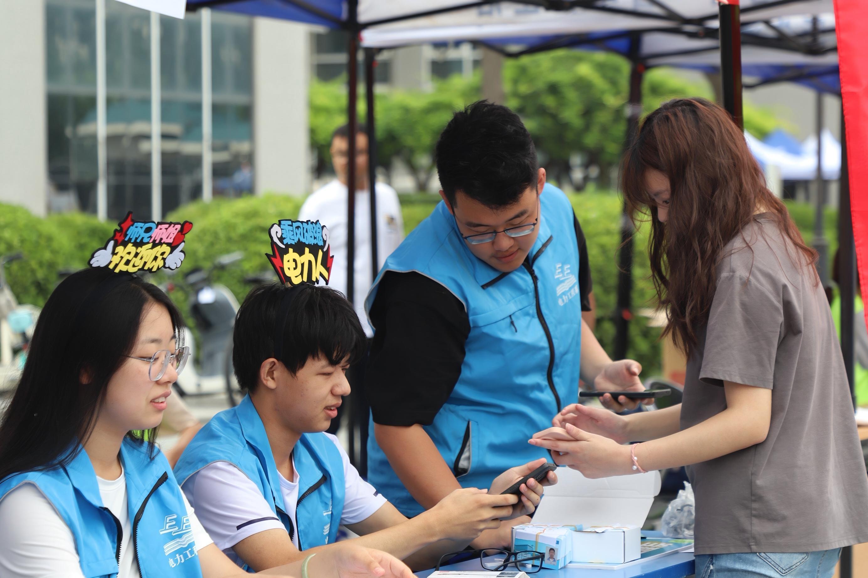 在保定校区,学生处安排迎新车辆到保定站、保定东站接站,在二校区设置4个家长休息区,为新生家长提供休息场地。保卫处提前规划新生通行路线,在主要路口设置人工引导岗及服务点,实现从校门到宿舍的全程无忧指引。教务处提前开通新生教材网上预订业务,组织制作“新生入学教育(零课堂)”慕课,新生可提前开展线上学习。网络与信息化工作处提前制作并开通新生校园卡,开通网络、邮箱、VPN账号,接待新生信息化方面咨询300余次;面向新生开展人工智能及大模型知识讲座并推送网络安全提醒,增强新生网络安全意识。后勤管理处开学前抢抓工期,完成学生餐厅全面消杀与宿舍改造;全体员工提前上岗,对教室、场馆等公共区域开展安全隐患排查,并及时检修配电、燃气等设施设备,全力打造安全舒适的校园环境。校团委统筹组建近450人次的志愿者服务队,于车站、宿舍区、主要交通路口等关键点位设立固定与流动服务岗,全程为新生及家长提供引导咨询、行李搬运、秩序维护等志愿服务。校医院提供24小时医疗服务,医护人员全程守护,昼夜不停歇,让新生感受华电大家庭的温暖。国际合作处设置学生出国交流项目宣传展板,宣传推广学校各类海外交流与联合培养项目,帮助学生及家长了解出国留学的途径和政策。