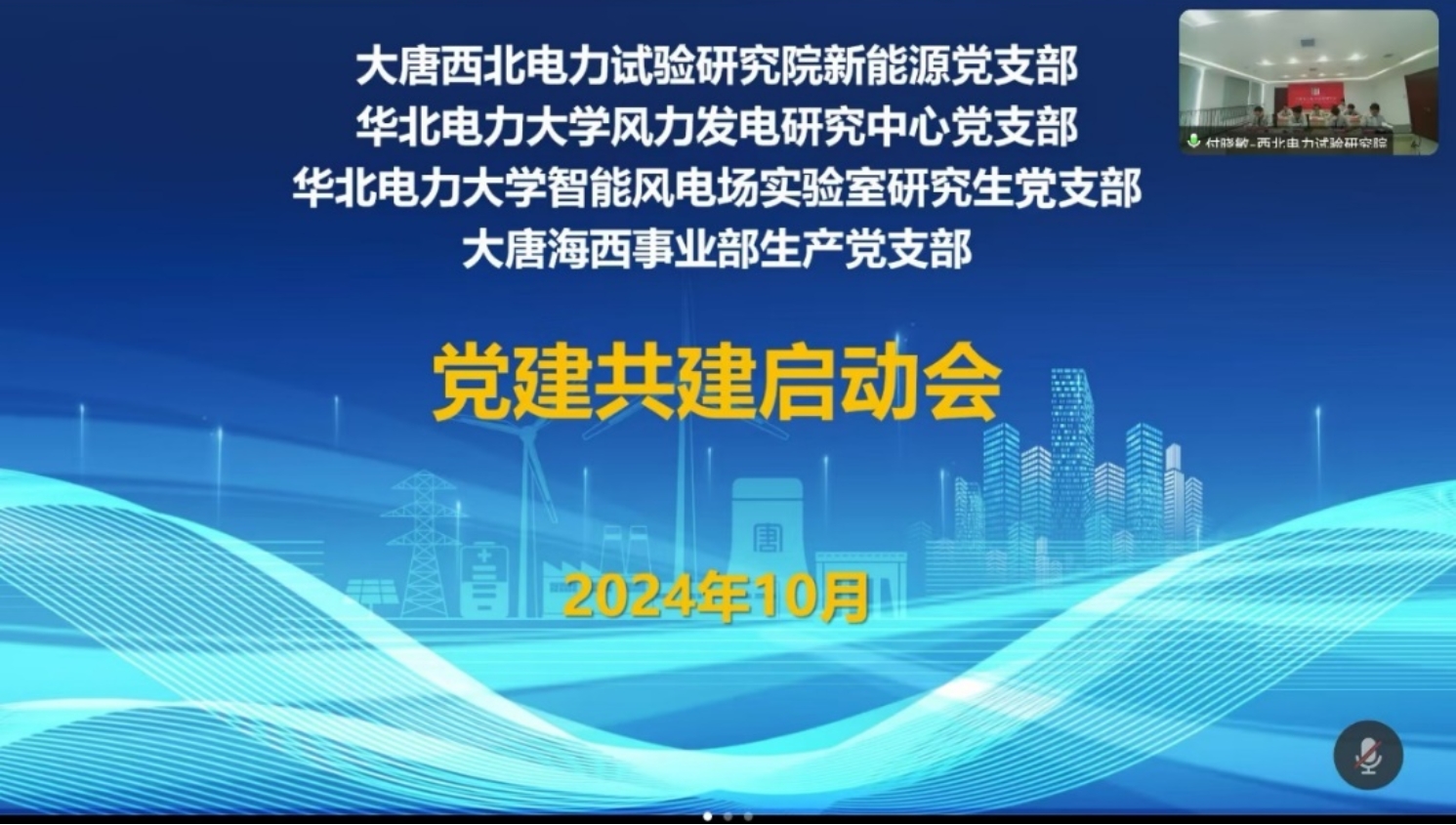 2024年10月16日,樱花动漫 风力发电研究中心党支部与智能风电场实验室研究生党支部联合大唐西北电力试验研究院新能源党支部、大唐海西事业部生产党支部“产学研”党建共建活动召开启动会。大唐西北电力试验研究院副院长袁园、党建部负责人张渊直、新能源所副所长周元贵、樱花动漫 风力发电研究中心党支部书记阎洁、智能风电场实验室研究生党支部书记闫亚敏及各支部的支部委员参加了本次活动。活动采取线上的方式在北京、西安两地同步开展。活动由大唐西北电力试验研究院新能源所副所长周元贵主持。